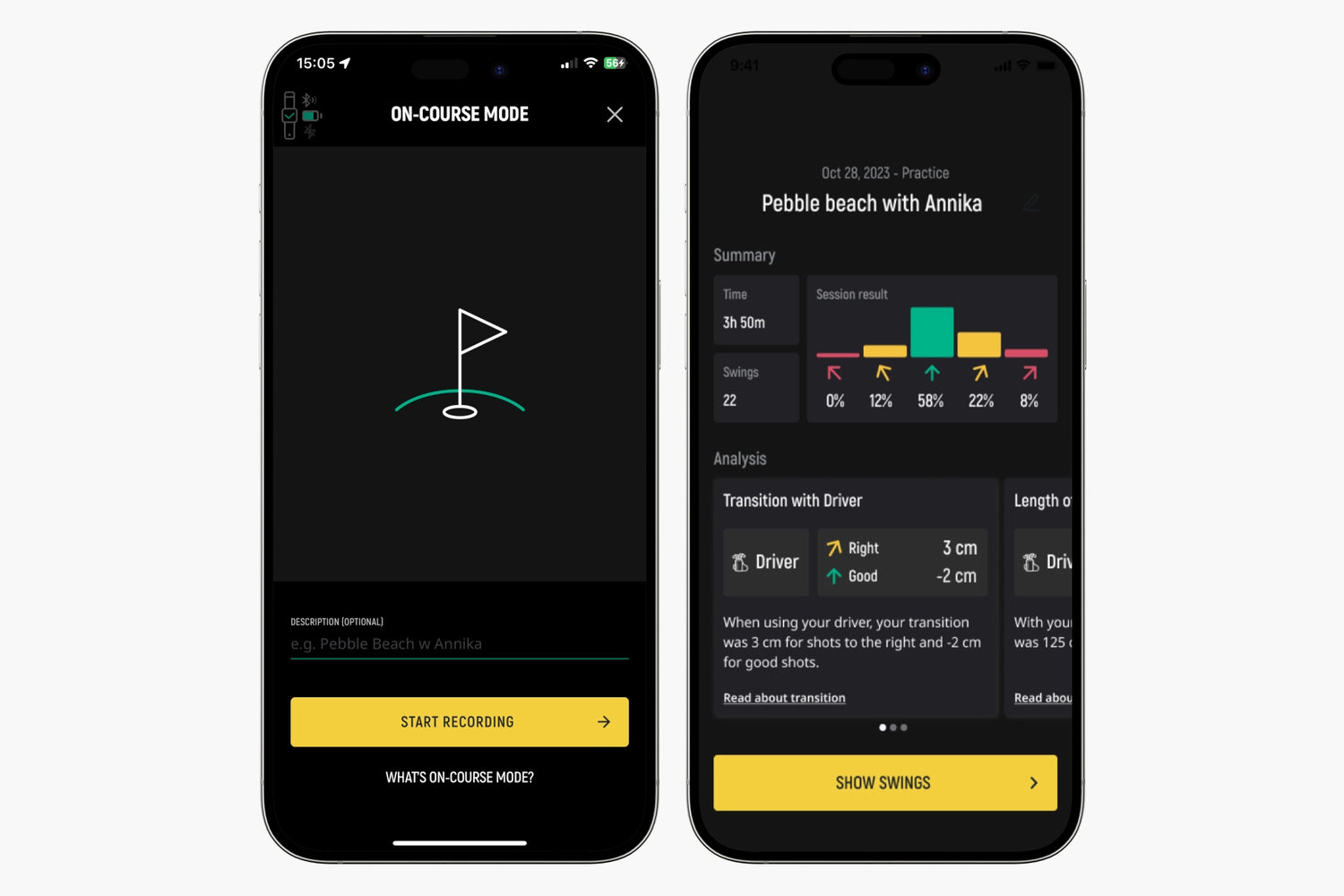 The On-Course Mode allows you to collect and analyze all swing metrics during a round, and compare that to your practice sessions.